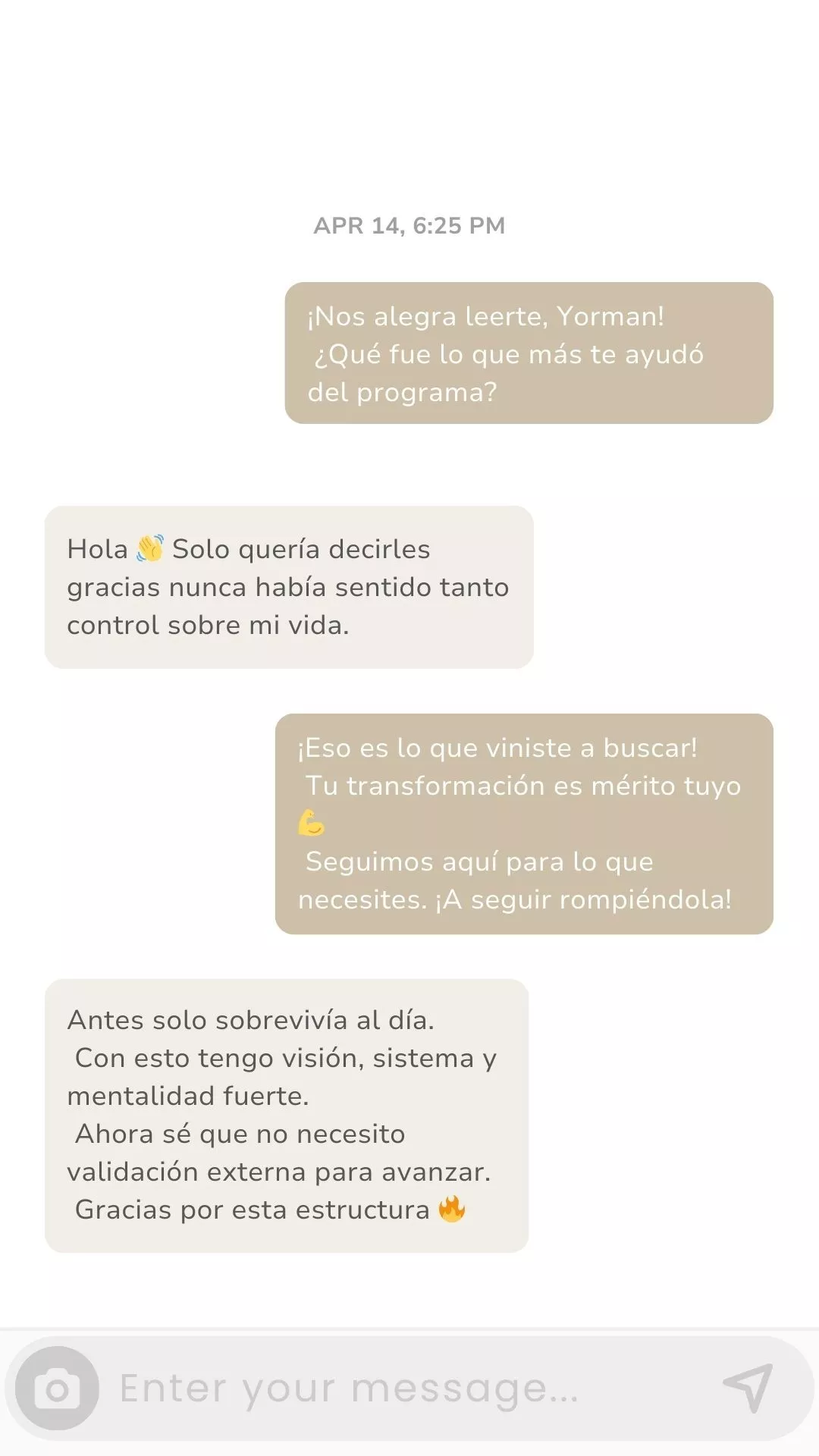 Si aplicas el sistema y sientes que no avanzas como esperabas durante el primer mes, nos sentamos contigo personalmente, analizamos tu caso y ajustamos el plan para que obtengas resultados reales.