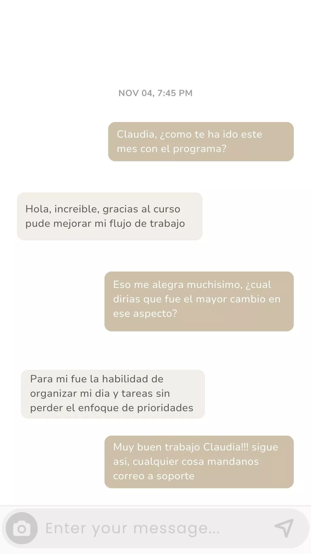 Si en ese periodo aplicas el contenido y sientes que no es para ti, puedes solicitar una sesión de ajuste o incluso tu reembolso. Sin riesgos. Con acompañamiento.
